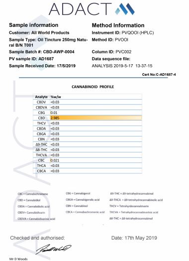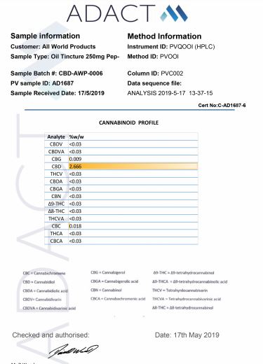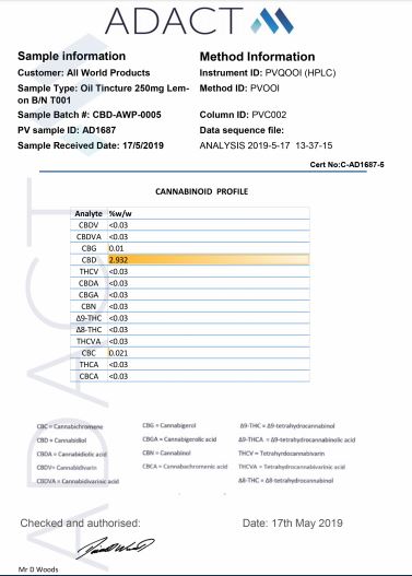 Broad spectrum cannabis extract, coconut based MCT oil with natural, lemon or peppermint flavour.