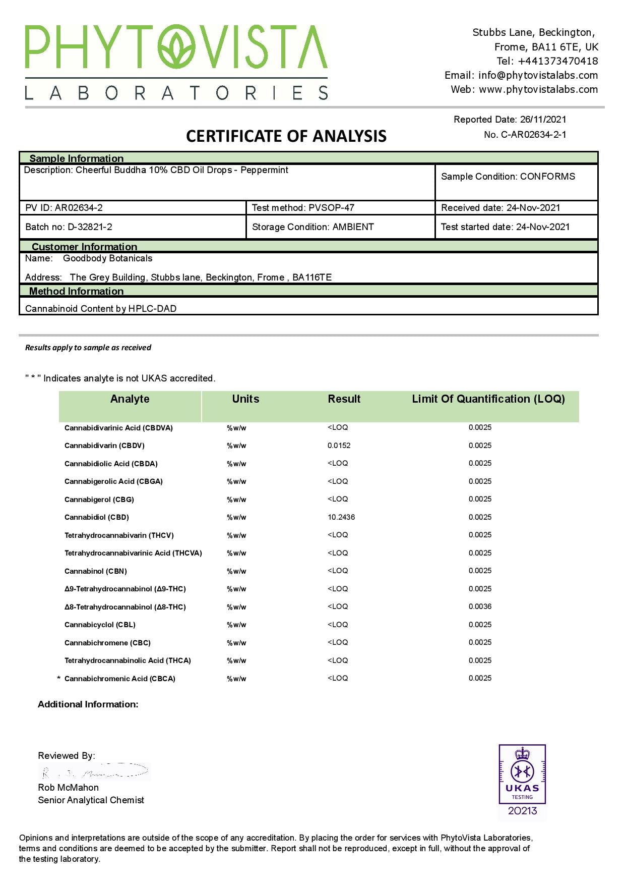 All of Cheerful Buddha's CBD products have been tested by certified third party laboratories.