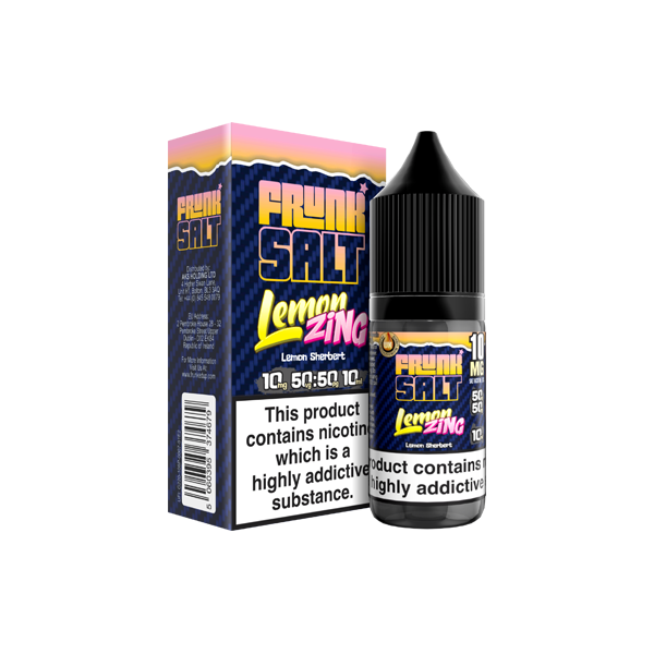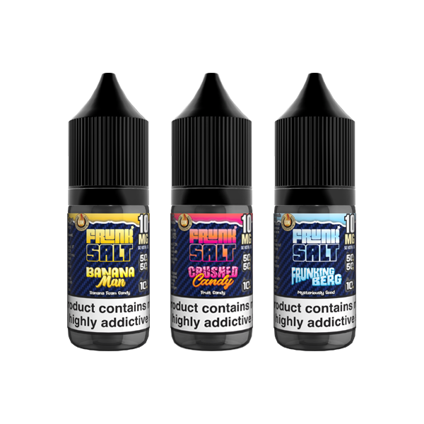 As a range of balanced 50VG/50PG e-liquids, these 10ml Frunk Salts Nic Salts are ideally suited Mouth To Lung (MTL) vaping devices, pods and kits. Once you start inhaling your chosen flavour, the nicotine intake will be delivered faster and will last much longer than with other e-liquids. In addition, the level of satisfaction is much higher than with traditional e-liquids as these Nic Salts come with minimal throat irritation as you inhale your chosen Frunk Salt flavour.