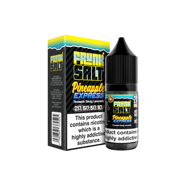 As a range of balanced 50VG/50PG e-liquids, these 10ml Frunk Salts Nic Salts are ideally suited Mouth To Lung (MTL) vaping devices, pods and kits. Once you start inhaling your chosen flavour, the nicotine intake will be delivered faster and will last much longer than with other e-liquids. In addition, the level of satisfaction is much higher than with traditional e-liquids as these Nic Salts come with minimal throat irritation as you inhale your chosen Frunk Salt flavour.