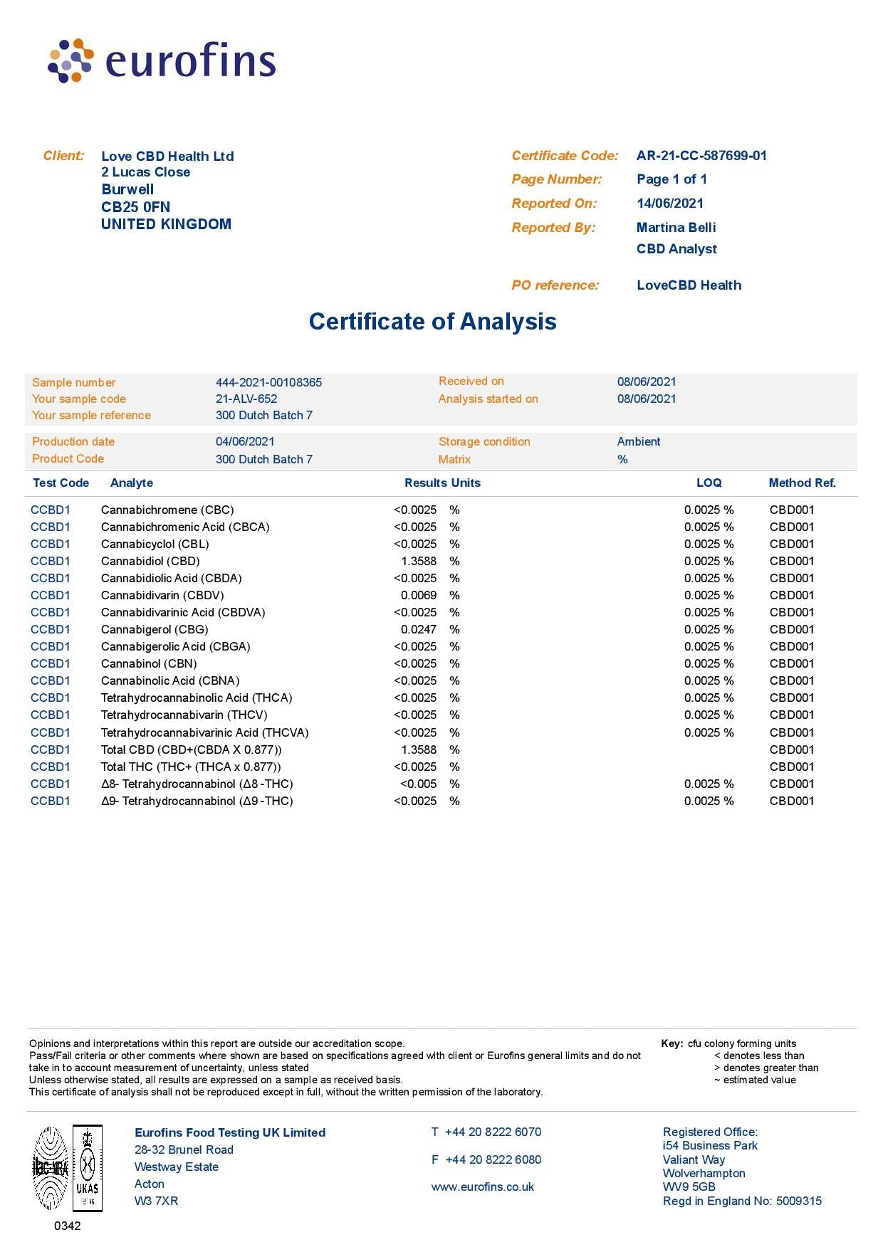 The purpose of these Love CBD Dutch CBD Oils, is to bring you broad spectrum cannabis oil at the lowest possible price. Grown on farms that do not use pesticides, artificial fertilisers or harmful chemicals, the 300mg Dutch CBD Oil is ideally suited to first-time users, or anyone looking for a lower dosage CBD product in a convenient and easy to dose spray format. The broad spectrum cannabis extract that is used in the 300mg Dutch CBD Oil contains a unique profile of cannabinoids, terpenes and flavonoids which is only found in Love CBD products.