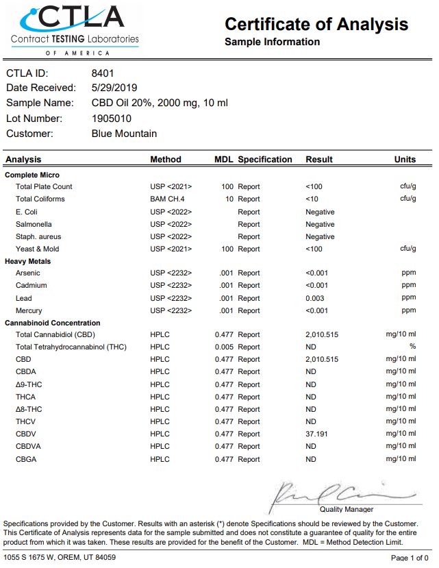 Ingredients: Organic MCT Oil, Broad Spectrum Terpenes, cannabidiol (CBD)