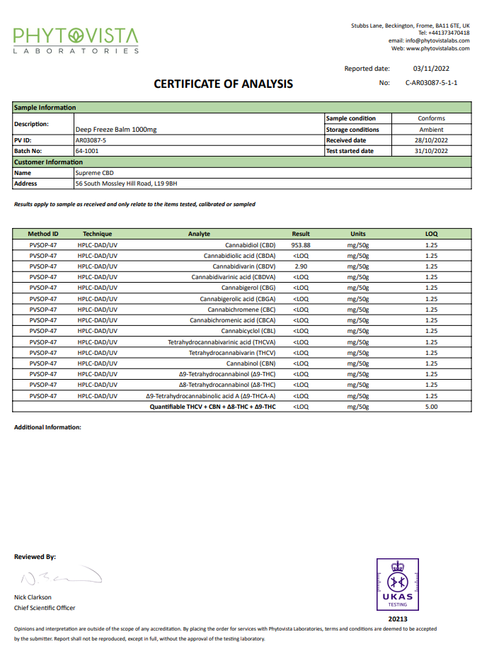 Supreme CBD 1000mg Broad Spectrum CBD Deep Freeze Balm - 50ml