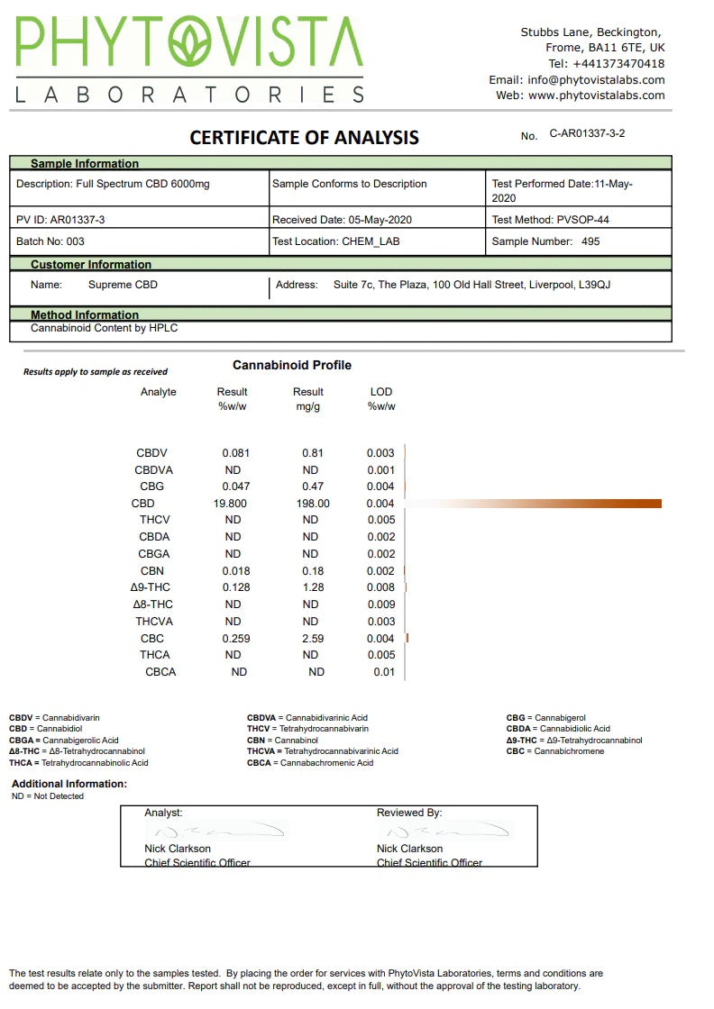 If you're looking for a high-quality, organic full spectrum CBD oil to experience for yourself, then you can't do better than with Supreme CBD's own 6000mg Full Spectrum CBD Tincture Oil where with a healthy dose of CBD will allow both your body and mind to experience all the effects of the whole hemp plant.
