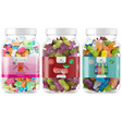 Ingredients: Glucose Syrup, Sugar, Invert Sugar, Acid: Citric Acid, Malic Acid; Gelling Agent: Pectin; Humectant: Sorbitol; Fruit Juice Concentrate; Apple (1%); Acid Regulator: Trisodium Citrate, Natural Flavours: Orange, Lemon, Strawberry, Pineapple, Elderflower. Blackberry; Colours: Black Carrot Concentrate, Spirulina Concentrate, Turmeric, Paprika Extract, Broad Spectrum Hemp Extract.