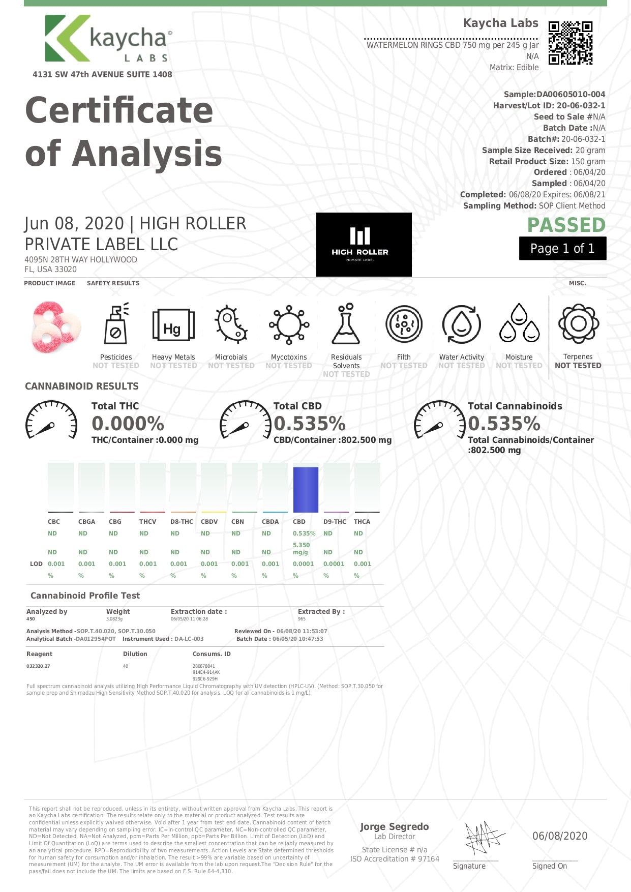 Maltitol Syrup, Water, Gelatin, Lactic Acid, Natural and Artificial Flavors, Citric Acid, Pectin (Derived from Fruit),Vegetable Oil (Coconut, Canola) and Carnauba Leaf Wax (To Prevent Sticking), 1Aspartame, FD&C Yellow #5, FD&C Red #40, FD&C Yellow #6, FD&C Blue #1, HEMP EXTRACT CANNABIDIOL (CBD). 1Phenylketonurics: Contains Phenylalanine.
